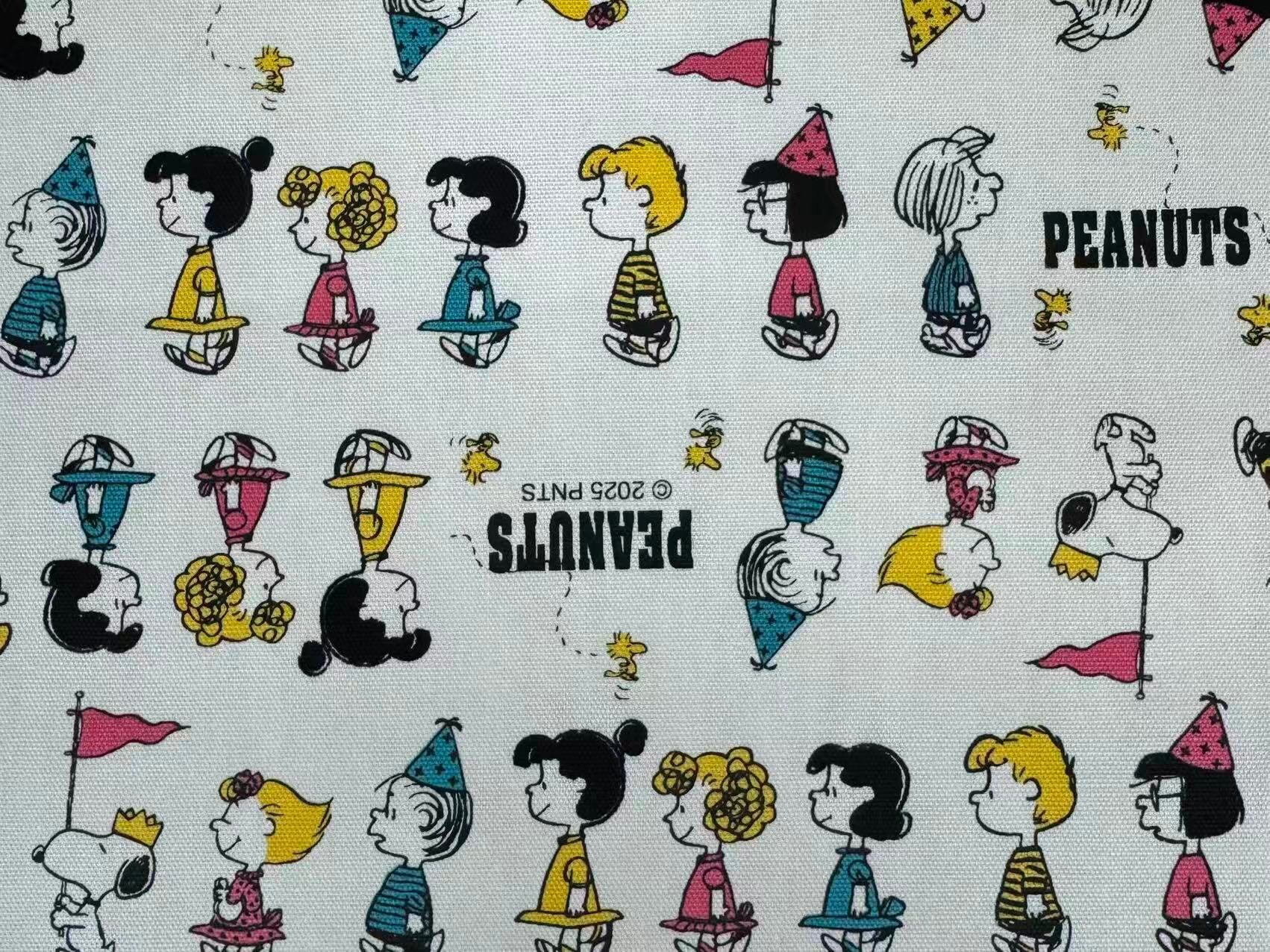 フラッグを持ったスヌーピーを先頭にピーナッツおなじみの仲間達がたくさん描かれている